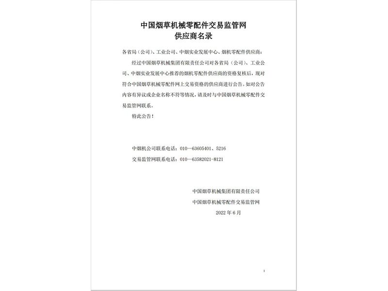 中國煙草機械零配件交易監(jiān)管網(wǎng)會員單位